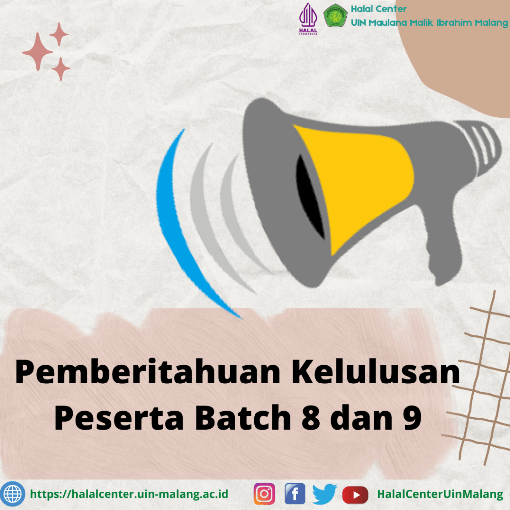 [pdf-embedder url=”https://halalcenter.uin-malang.ac.id/wp-content/uploads/2022/09/Surat-ketetapan-Kelulusan-Peserta-Pelatihan-batch-8-dan-9.pdf” title=”Surat ketetapan Kelulusan Peserta Pelatihan batch 8 dan 9″] Dengan hormat, Seiring telah terlaksananya Pelatihan Pendamping Proses Produk Halal (PPH) Batch 8 dan 9 yang dilaksanakan pada tanggal 2- 4 September 2022 Kelas A dan kelas B, Halal Center UIN Maulana Malik Ibrahim Malang telah melakukan evaluasi terhadap