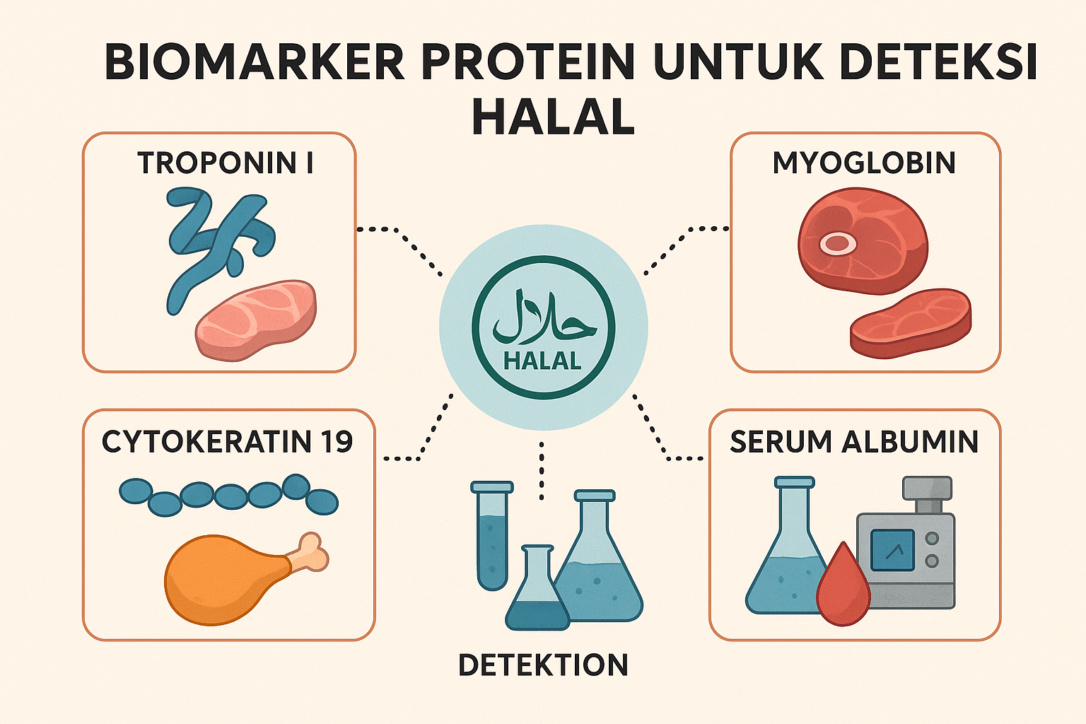 Biomarker adalah indikator biologis yang bisa menunjukkan keberadaan komponen spesifik dari sumber haram, seperti babi, alkohol, atau enzim dari hewan yang tidak disembelih sesuai syariah. Biomarker dapat berupa protein, DNA, lipid, enzim, atau senyawa kimia lainnya. Penggunaannya sangat penting dalam mengidentifikasi kandungan haram bahkan dalam jumlah yang sangat kecil dan dalam produk olahan kompleks.