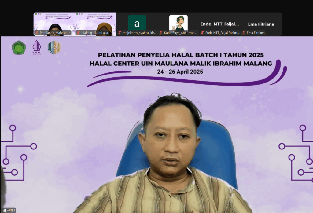 Pelatihan Penyelia Angkatan 3 yang diselenggarakan oleh Halal Center UIN Malang pada tanggal 24-26 April 2025 sukses dilaksanakan, dengan jumlah peserta sebanyak 29 orang yang berasal dari berbagai daerah, peserta sangat antusias dalam mengikuti rangkaian materi yang disajikan.