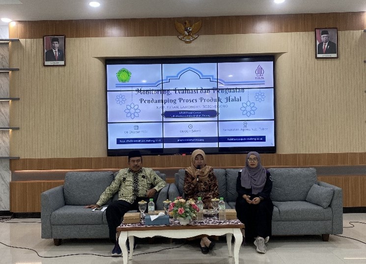 Pada tanggal 06 Oktober 2024, telah terselenggara kegiatan Monitoring, Evaluasi, dan Penguatan Pendamping Proses Produk Halal (PPH) LP3H Halal Center UIN Maulana Malik Ibrahim Malang bagi Kabupaten Tuban, Lamongan, dan Bojonegoro. Acara ini bertempat di Aula Kantor Kementerian Agama Kabupaten Tuban dan dihadiri oleh Kepala Kementerian Agama Kabupaten Tuban, Ibu Hj. Umi Kulsum, S. Ag, M. Pd. I, serta Ketua Satgas Halal Kabupaten Tuban Bapak Drs. Moh. Qosim, dan Tim LP3H Halal Center dari Universitas Islam Negeri Maulana Malik Ibrahim Malang, yang hadir sebagai pemateri.