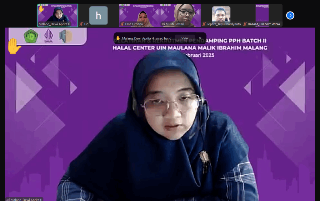 Halal Center Universitas Islam Negeri (UIN) Malang sukses menggelar acara Pelatihan dan Rekrutmen Pendamping Halal Batch II pada tanggal 21 hingga 22 Februari 2025. Acara ini bertujuan untuk memperkenalkan dan memperdalam pemahaman peserta mengenai kebijakan, regulasi, dan syarat-syarat yang harus dipenuhi dalam proses sertifikasi halal.